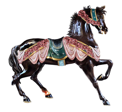 el caballo esta muy lindo, me dan una idea clara acerca de como eran vestidos los caballos en esta epoca para las damas.